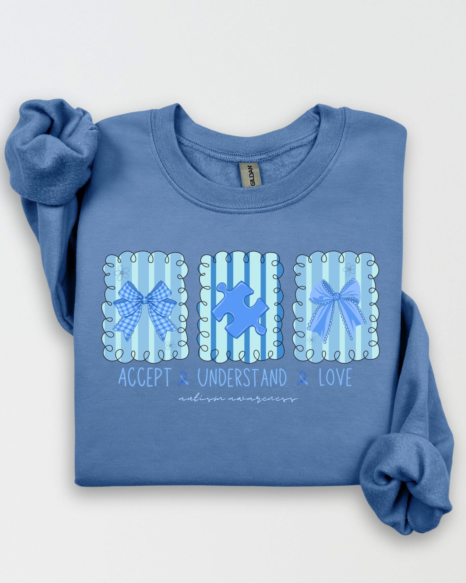 Long sleeve shirts, crewnecks, and hoodies are 50/50 blend of polyester and cotton.
