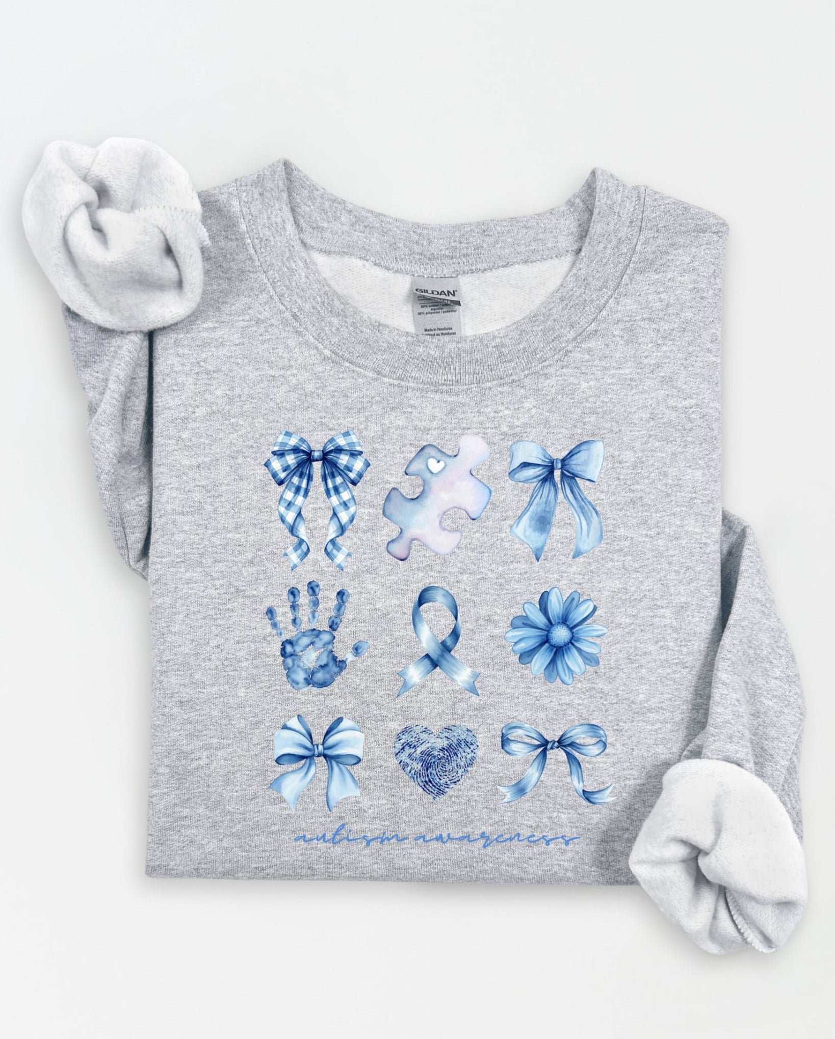 Long sleeve shirts, crewnecks, and hoodies are 50/50 blend of polyester and cotton.