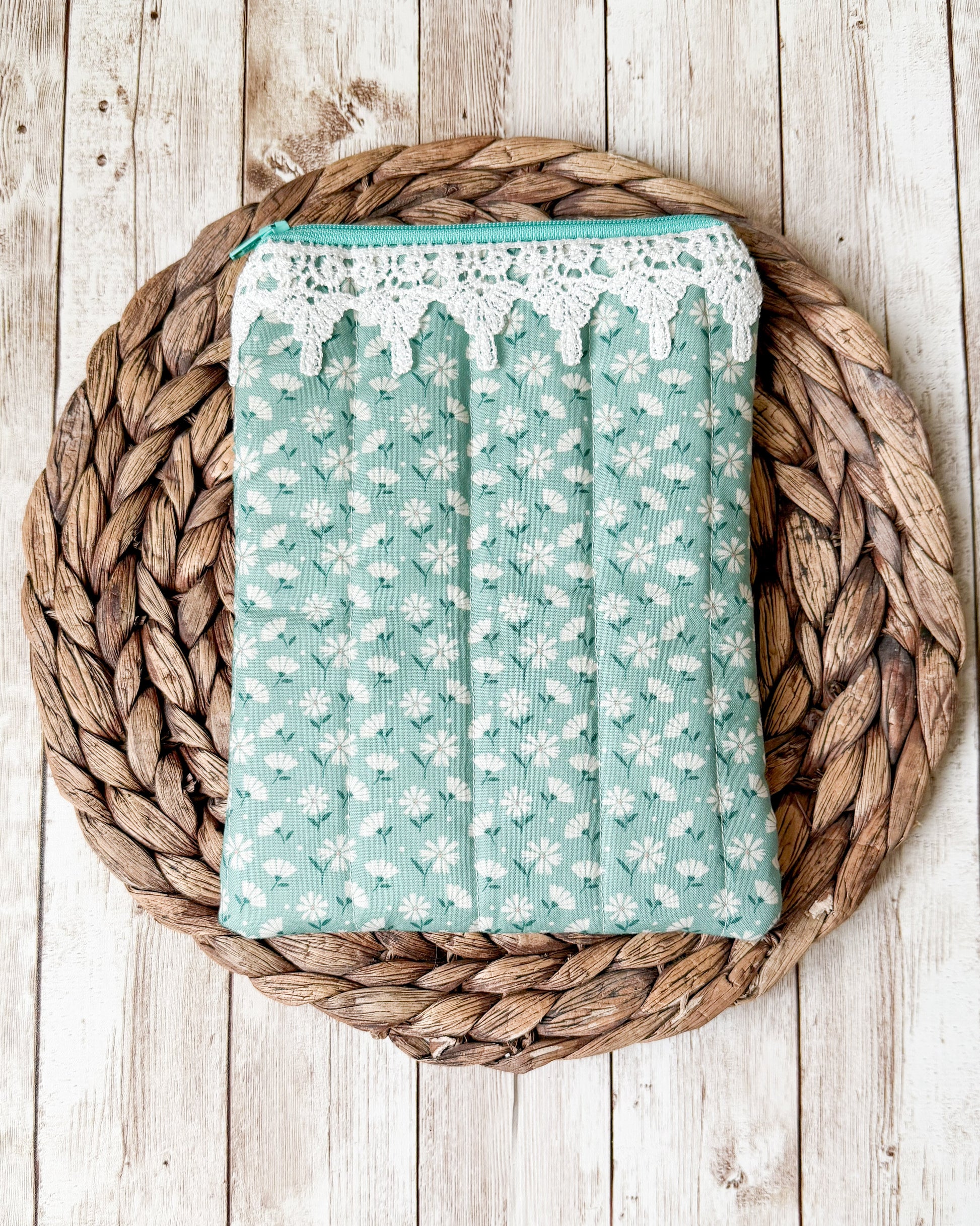 Blue Daisy Quilted Kindle Sleeve with Zipper and Trim