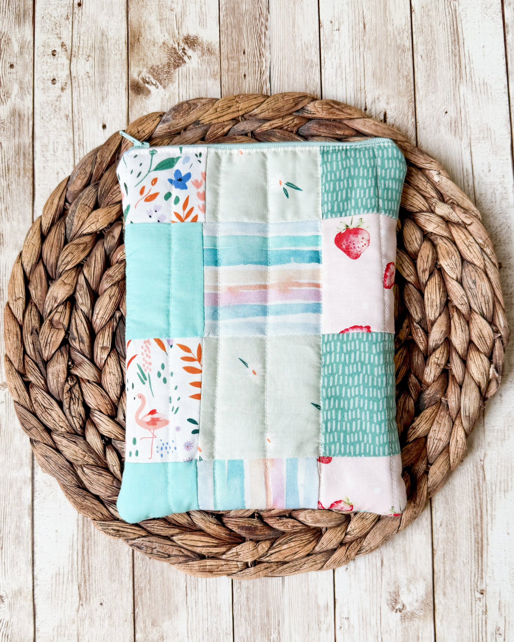 Teal Patchwork Quilted Kindle Sleeve with Zipper